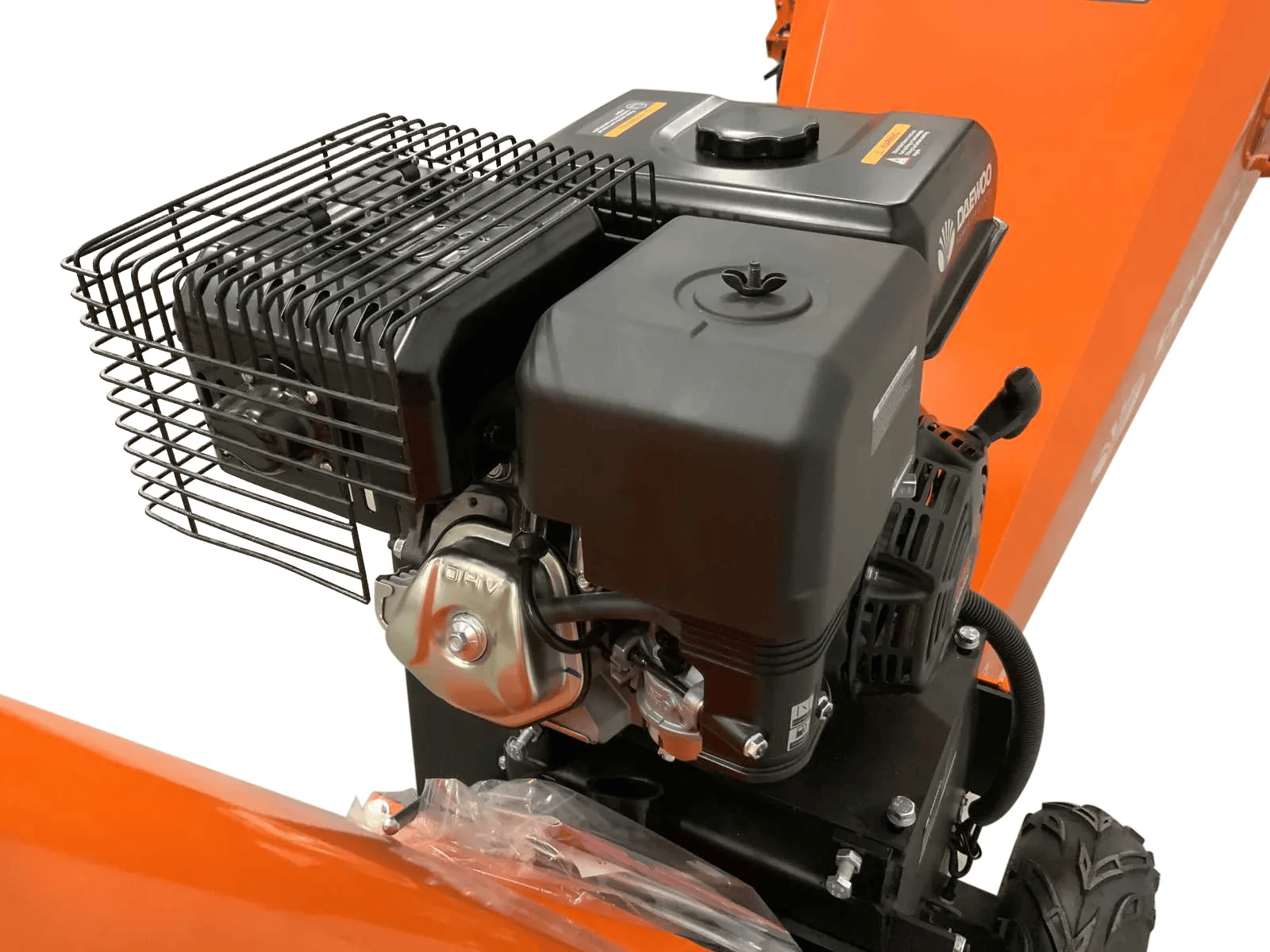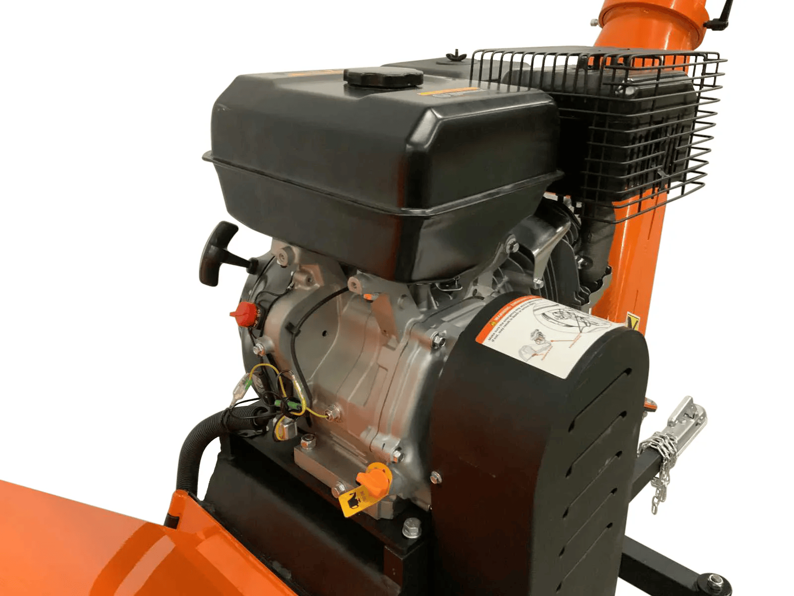 Het versnipperde materiaal wordt via de 1.357 mm hoge uitworpschacht netjes afgevoerd, wat het werk efficiënt en schoon houdt. De dubbele V-snaar aandrijving zorgt voor een betrouwbare krachtoverbrenging, terwijl de centrifugaalkoppeling de motor beschermt en een lange levensduur garandeert.